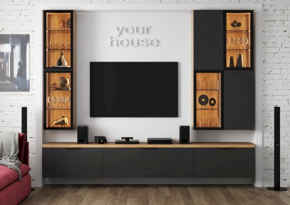 • Встроенный врезной профиль для подсветки + рассеиватель по центру обеих боковин (по всей высоте) +