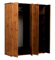 Самый большой и вместительный модуль во всей линейке шкафов! Шкаф – четырехдверный, слева, за двумя распашными дверцами – отделение для одежды на вешалках, справа – за двумя дверцами – полки. Высота шкафа позволяет разместить на вешалках даже очень длинную одежду – например, платья «макси». Сверху и снизу находятся полки. Наверх можно убрать то, чем вы пользуетесь нечасто, а вниз – коробки с обувью. Металлическая штанга выдерживает вес до 20 кг, каждая из полок – до 5 кг. Справа – тоже за двумя дверцами – зеркальной и с реечным фасадом – спрятались полки. Они широкие и глубокие – поместится все!
