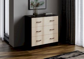 Комод подойдет даже для небольшой спальни, при этом три объемных ящика вместят белье и другие предметы гардероба.