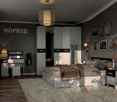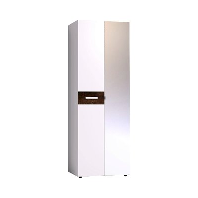 Двухстворчатый Норвуд 54 Шкаф для одежды прекрасно подойдет для хранения одежды и белья в спальне. Глухой белый фасад модуля декорирован контрастной брашированной вставкой и светлой ручкой из массива. Зеркальный фасад декорирован металлической ручкой-скобой. Внутреннее наполнение модуля — стационарная штанга длиной 757 мм и две полки.