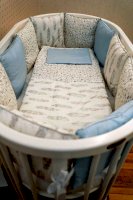 • Комплект простыней на 2 матраса (круглый и овальный: для 2-х трансформаций детской кроватки Dreams).