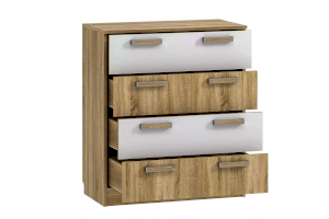 Комод «Фанк» - идеально подходит для обустройства комнаты подростка. Светлые тона мебели, выдержанный стиль прекрасно смотрятся в любом интерьере. Четыре удобных выдвижных ящика – это огромный объем для хранения белья, предметов одежды и аксессуаров. Выдвижные ящики оснащены шариковыми направляющими полного выдвижения, равномерно распределяют вес содержимого и обеспечивают плавный бесшумный ход ящика. Комод отлично сочетается с другими моделями коллекции «Фанк».