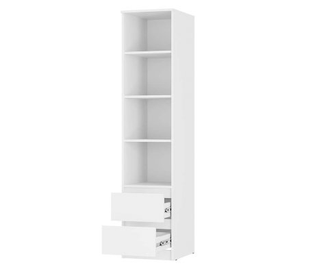 Оснащен двумя выдвижными ящиками, а также полками. Подойдет для хранения кухонных принадлежностей. В пенале также можно хранить домашнюю аптечку, важные мелочи, книги и документы.