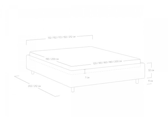Размер спального места 80*180 / 80*190 / 80*200 / 90*200 / 120*200 / 140*200 / 160*200 / 180*200 / 200*200 / 90*190 / 120*190 / 140*190 / 160*190 / 180*190