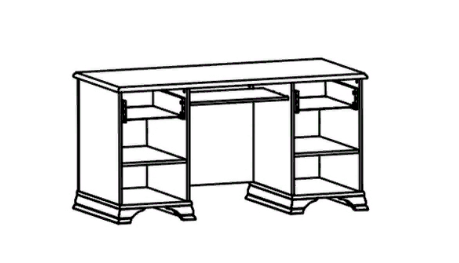 Под крышкой стола находится выдвижная полка – удобное решение для размещения клавиатуры к компьютеру. По бокам имеются тумбы, в каждой из которых – выдвижной ящик и отделение с полкой внутри.