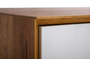 • В центре два выдвижных ящика на шариковых направляющих нижнего крепления не полного выдвижения с доводчиком.