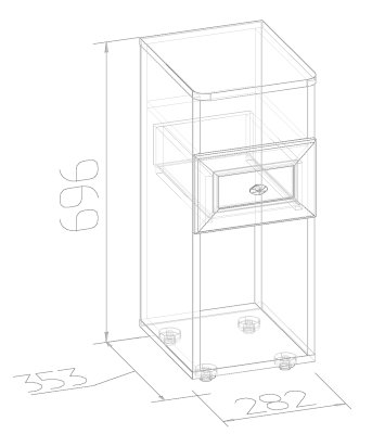 Высокая и узкая (всего 282 мм) прикроватная тумбочка в английском стиле идеально дополнит классический интерьер спальни. Столешница тумбы со скругленными углами. Выдвижной ящик глубиной 30 см, высотой 12 см и шириной 22 см на шариковых направляющих, которые обеспечивают минимальный люфт и плавность хода. В высокой нише можно хранить планшет, высокие журналы и альбомы. Чтобы не занимать место на столешнице, мы рекомендуем навесить над тумбочкой бра или модные потолочные светильники на длинных подвесах.