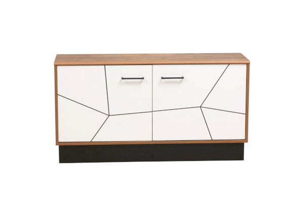 Компактная, но вместительная тумба под ТВ за двумя распашными дверцами скрывает два отсека, в каждом из которых находятся по две полки из ЛДСП. По высоте они разные – верхние чуть поменьше, нижние – побольше. На любой вкус и размер.