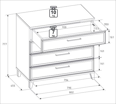 Максимальная нагрузка на ящик: 7 кг