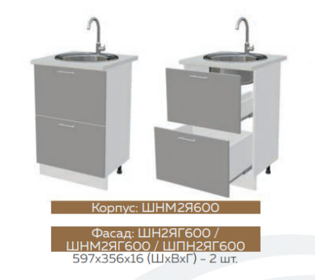 ШН2ЯГ600 Шкаф нижний с 2 глубокими ящиками